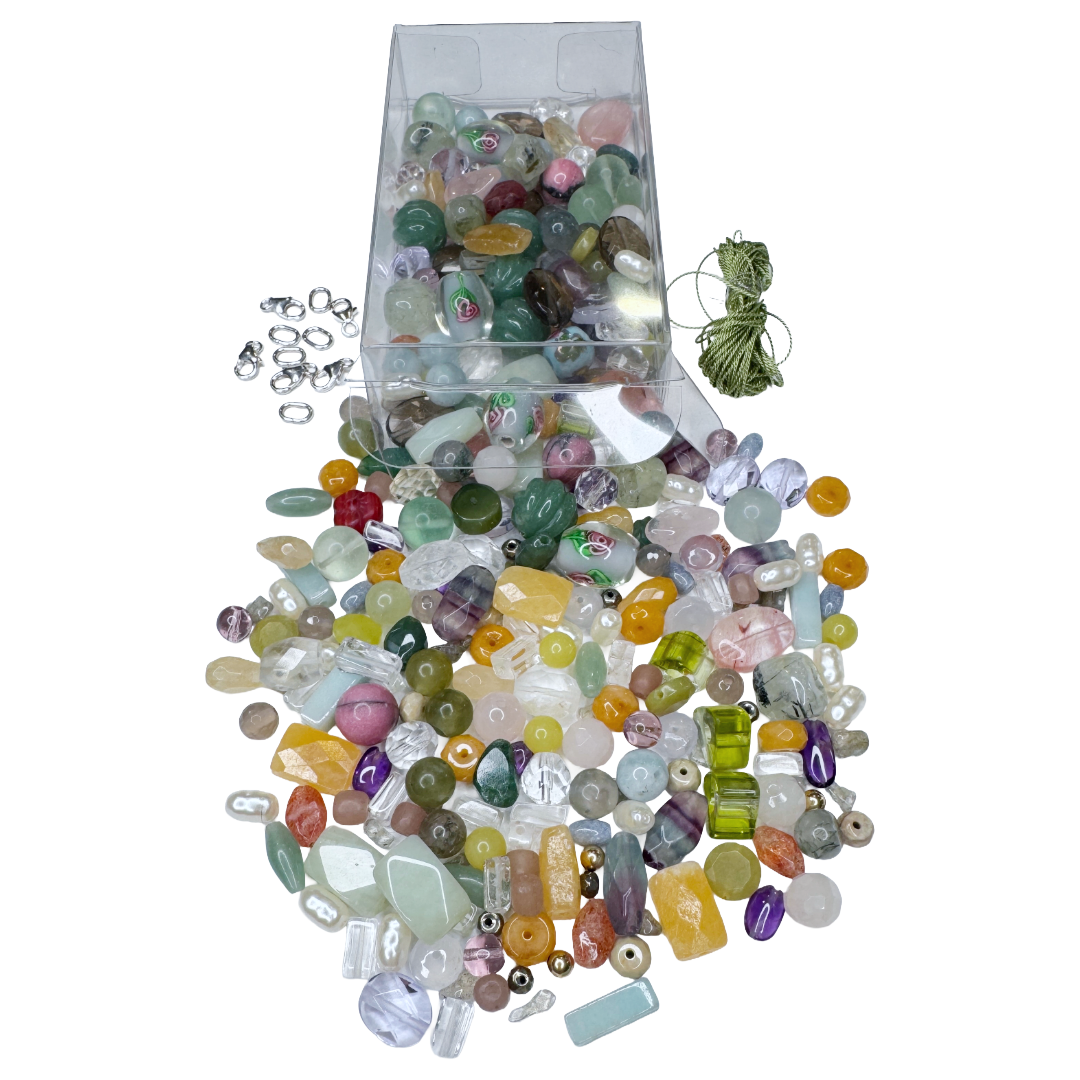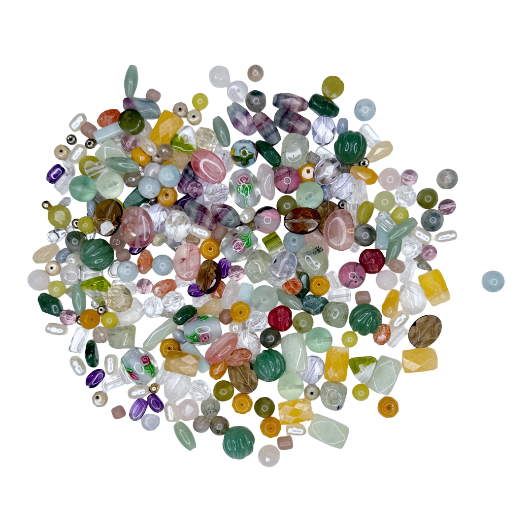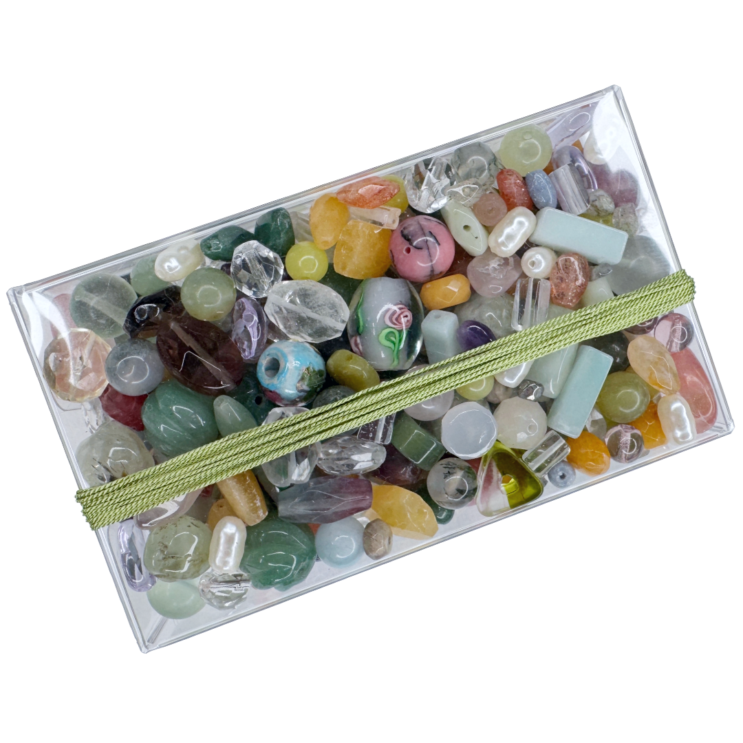 Inspired by a field full of unique flowers the "I Can Buy Myself Flowers Necklace Kit" features reclaimed semi-precious stones and vintage beads, pre-threaded silk strings, and clasps made from recycled sterling silver. Each kit contains enough materials for five 16" necklaces.